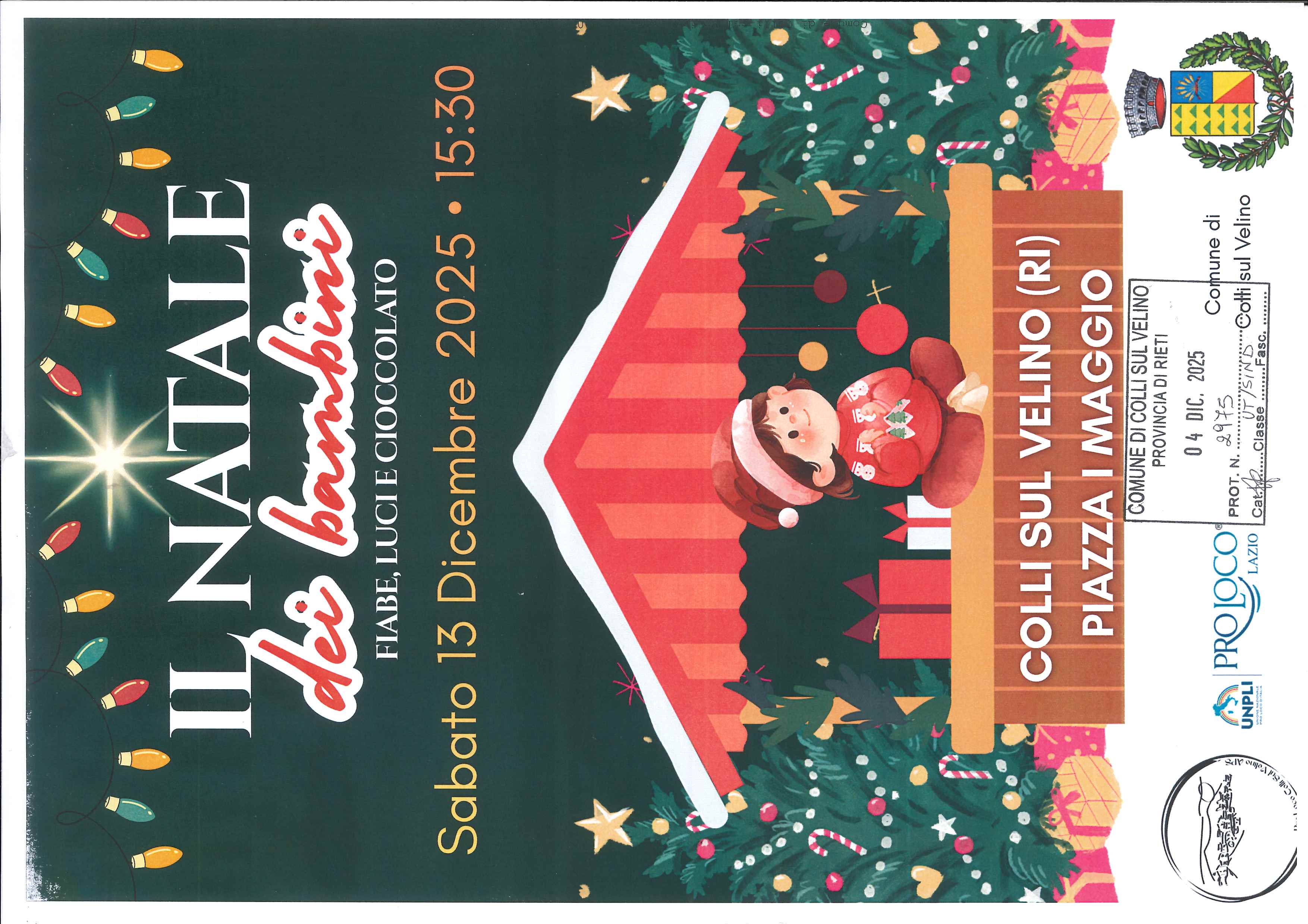 La Pro Loco APS di Colli sul Velino ed il Comune di Colli sul Velino invitano bambini ed adulti Sabato 13 Dicembre ore 15,30 in P.zza I° Maggio